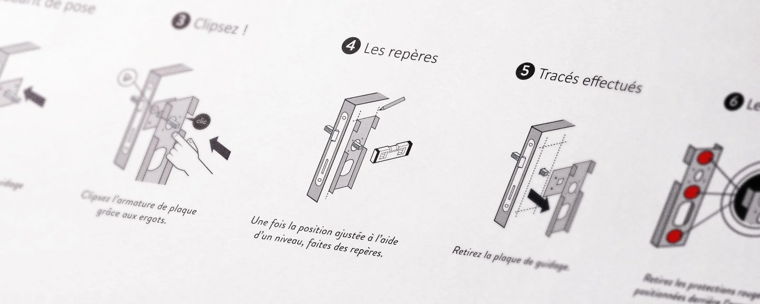 2022 - Création d’une Notice de montage produit ( poignées de porte PSP : Pose Sans Percement ).